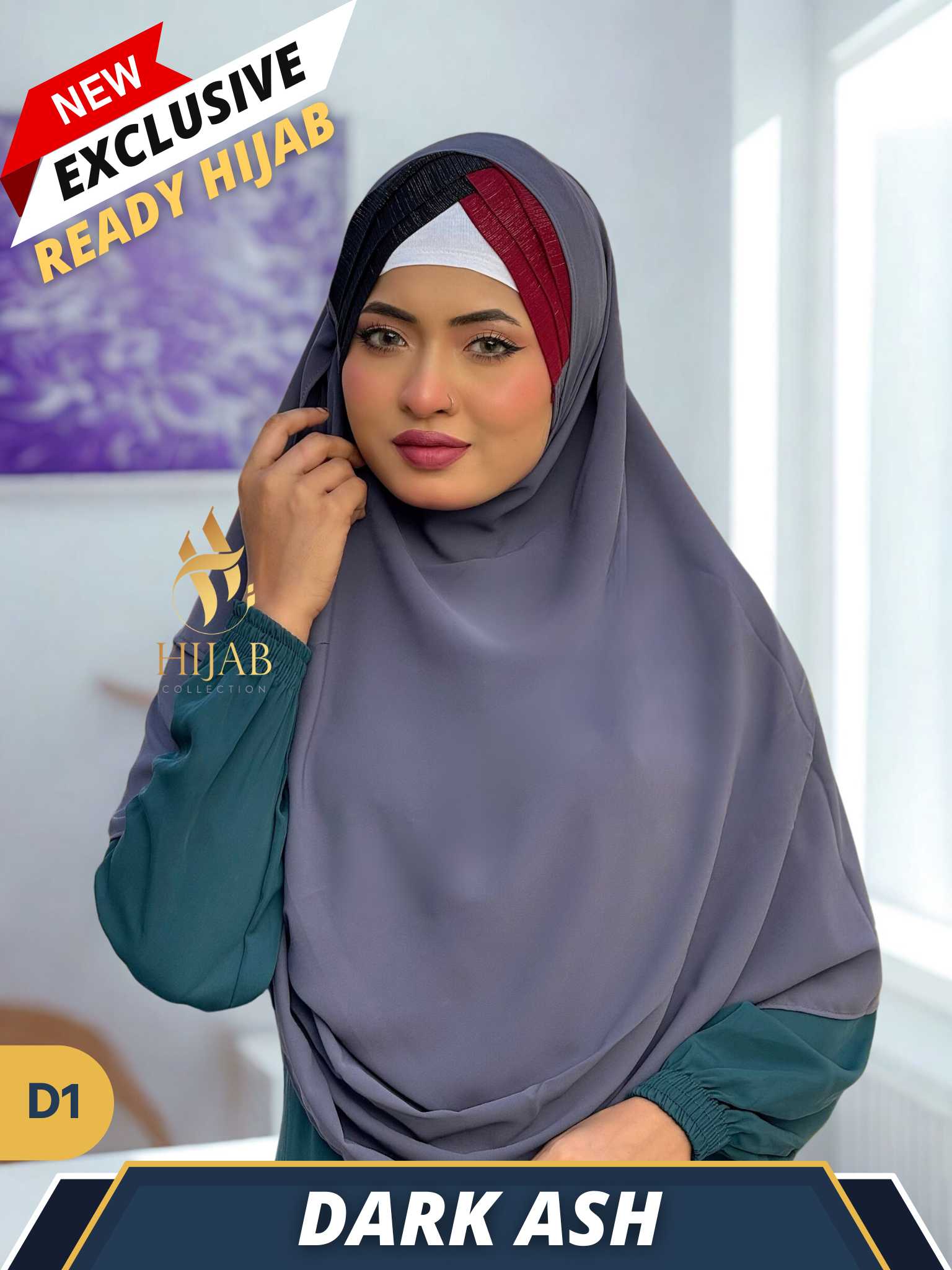 ডায়মন্ড জর্জেট ডাবল লুপ ইনস্ট্যান্ট ক্রস রেডি হিজাব -CROSRH- Lite Ash Color
