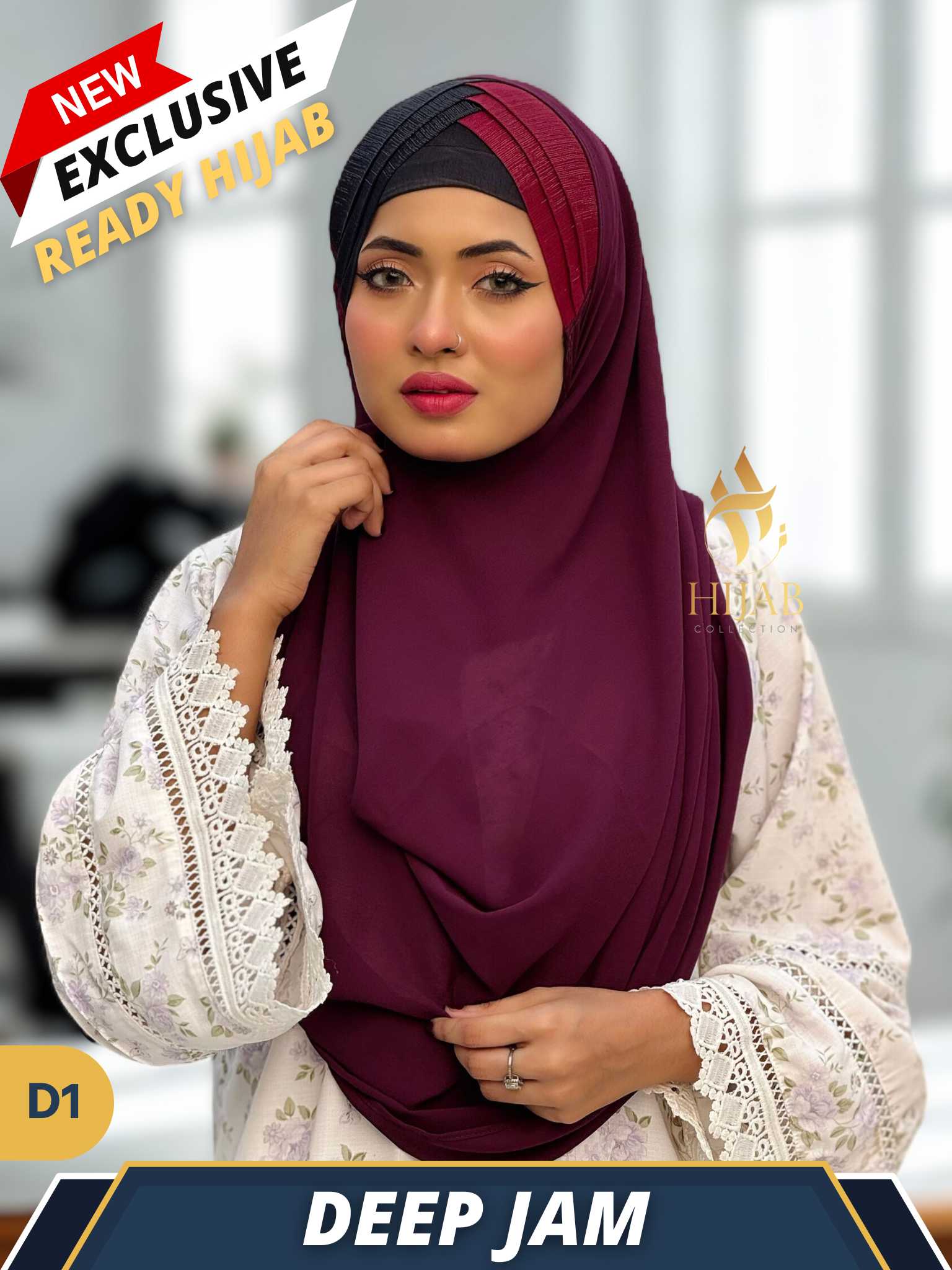ডায়মন্ড জর্জেট ডাবল লুপ ইনস্ট্যান্ট ক্রস রেডি হিজাব -D1CROSRH- Deep Peyaz Color