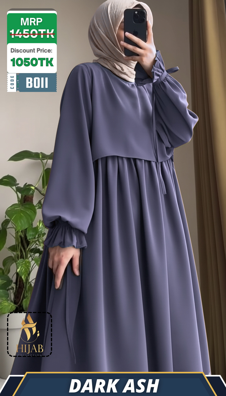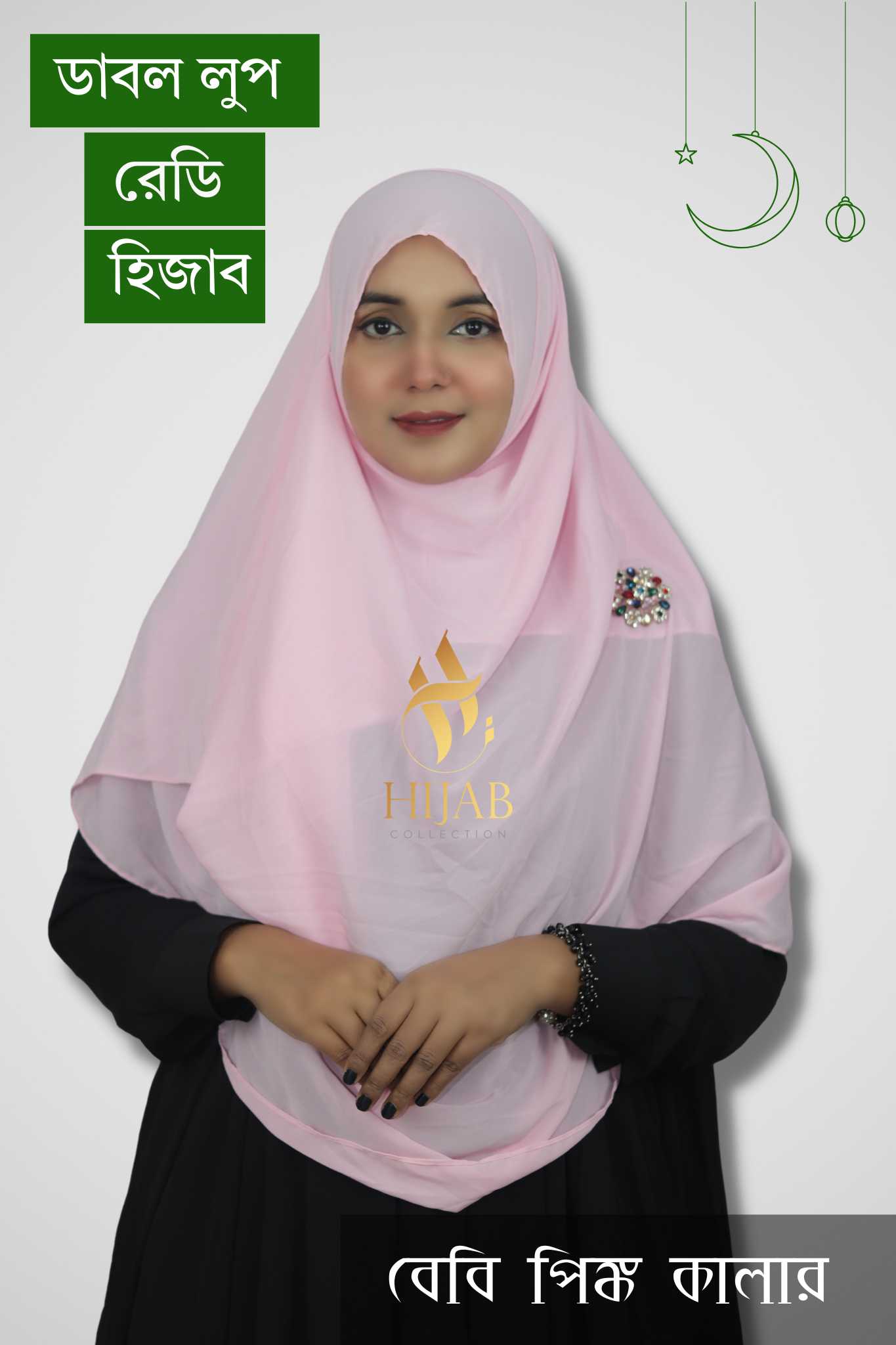 ডায়মন্ড জর্জেট ডাবল লুপ ইনস্ট্যান্ট লেস রেডি হিজাব -HLRH- Lite Ash Color