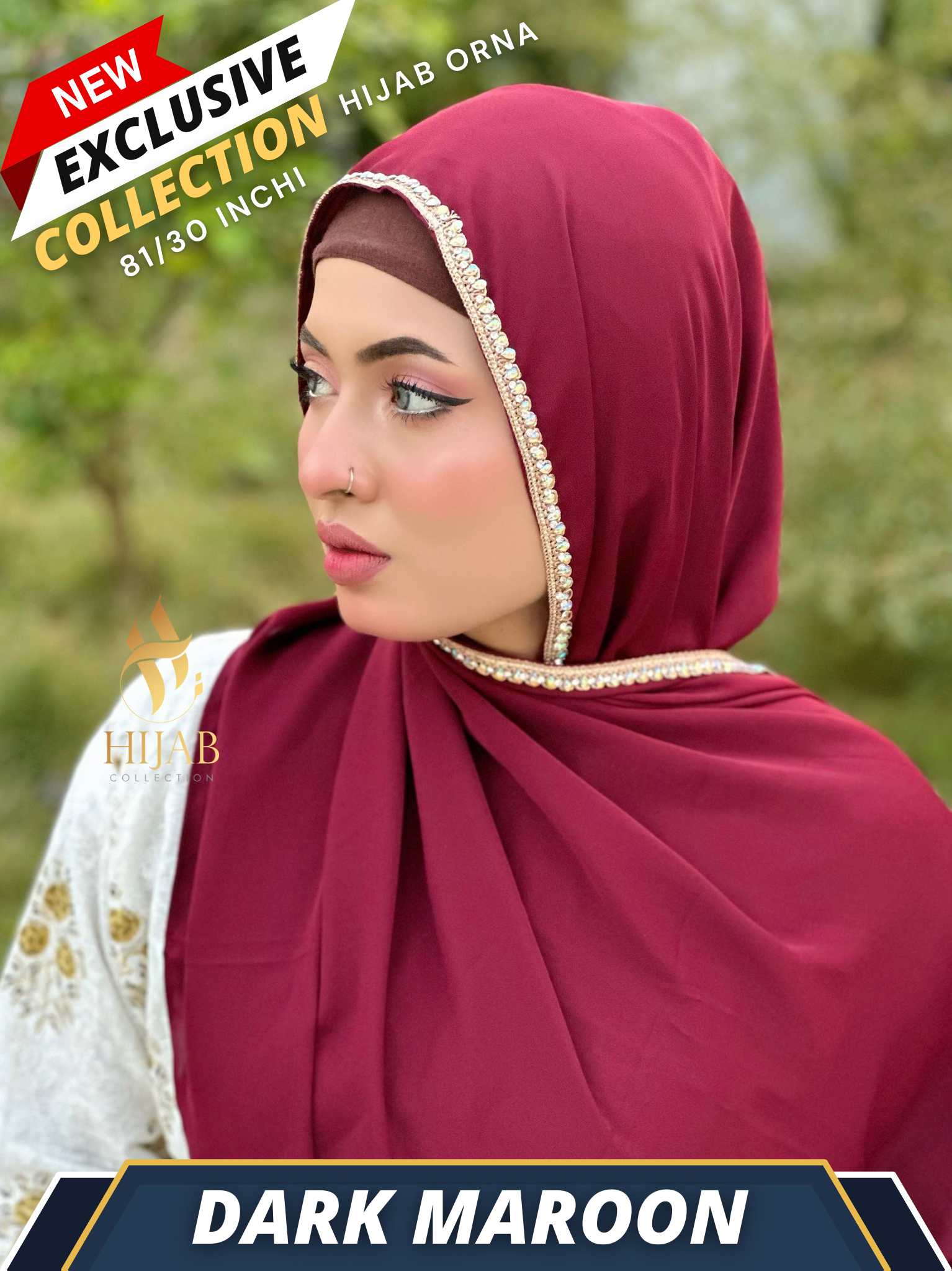 ডায়মন্ড জর্জেট ডাবল লুপ ইনস্ট্যান্ট লেস রেডি হিজাব -LRHD1- Dark Maroon Color