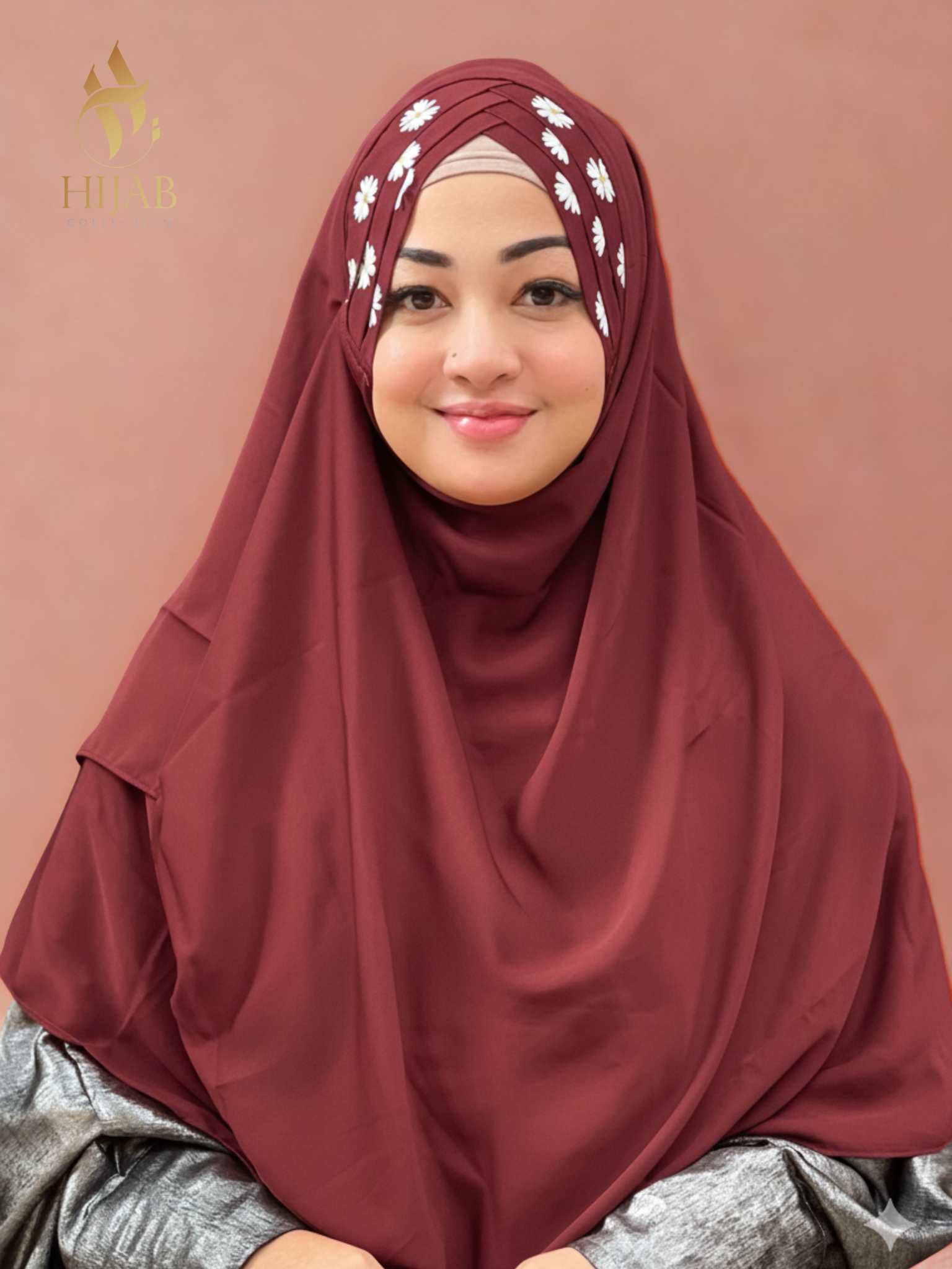 ডায়মন্ড জর্জেট ডাবল লুপ ইনস্ট্যান্ট লেস রেডি হিজাব -LRHD1- Kochuripana Color